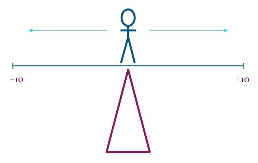 Most people assume that reactions only happen at the extreme ends of the seesaw, but that isn’t the case. You don’t have to reach a +10 or a -10 to be triggered. Even a +2 or -3 means you have stepped off the centre. From the outside it may look like everything is perfectly calm. You might still be speaking politely and behaving professionally. But internally, something else has taken over.